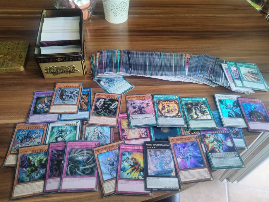 Prodam 500 dobro ohranjenih mešanih kartic Yugioh. Karte so mešane in dobro ohranjene. Vse so v Angleškem jeziku. Vmes so tudi bleščeče karte (foili) vseh vrst. Prav tako so vmes redke (rare) karte. Zraven tudi prilozim kovinsko skatlo z motivom od Yugioh-a. Paket sestavlja približno 20 svetlečih kart, približno 50 redkih (rare) ostalo so commoni vseh sort. (spell, trap, classic, xyz...)