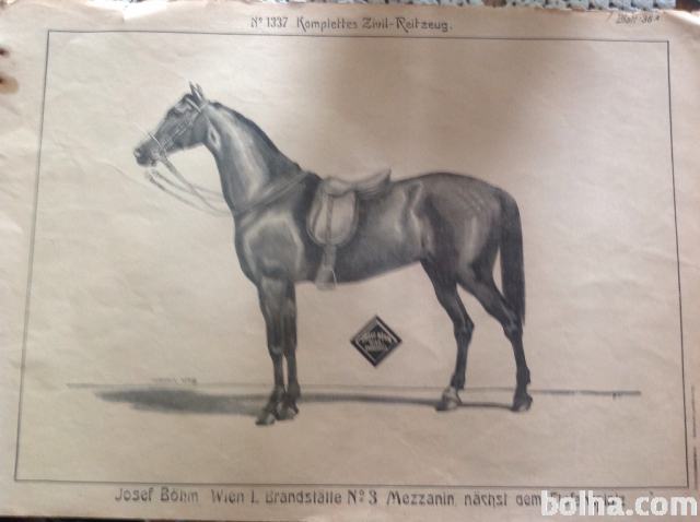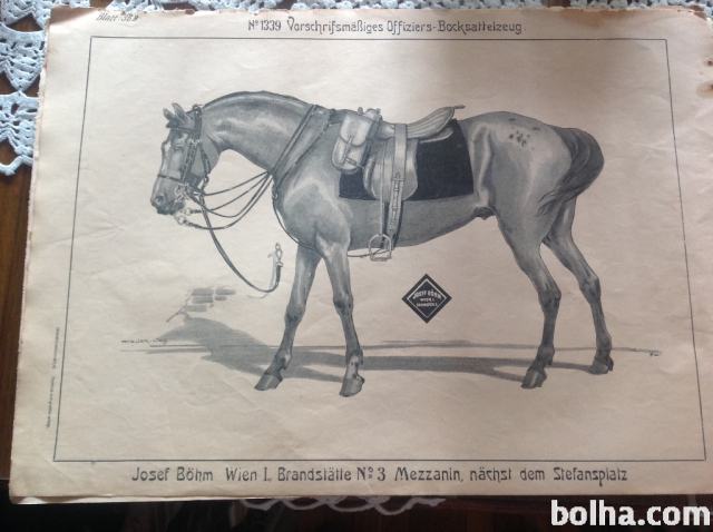 Vse za opremo konja jahača primerno za uokvirit.Avstroogrska-katalog Jisef Bohn iz Dunaja slika 42x29