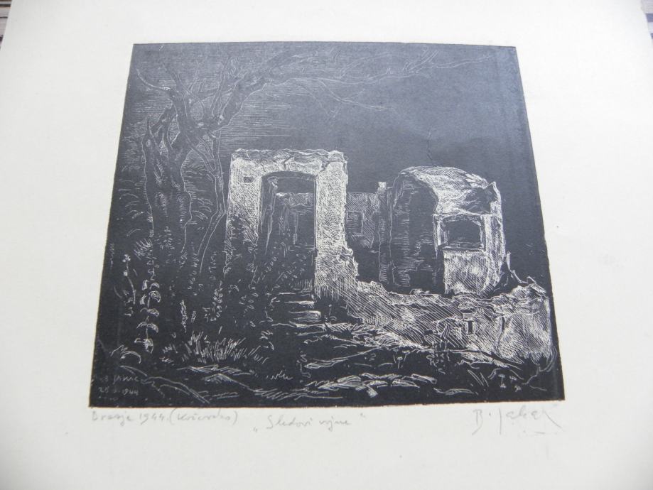 Prodaja se sitotisk na sliki, mere lista 246x340 mm, mere sitotiska 140x124 mm.