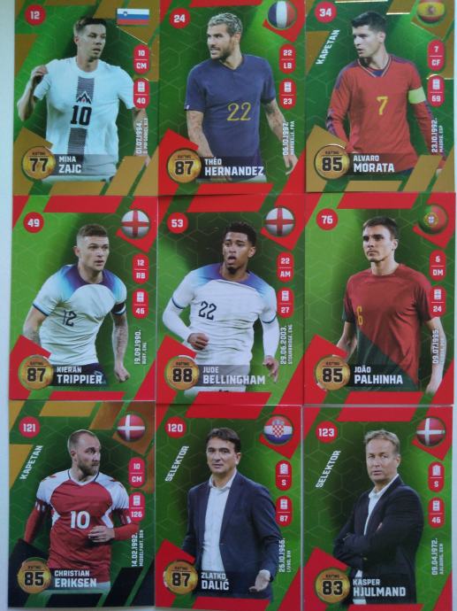 - posebne zlate (4,00€/kos) št.: 1 (Jan Oblak), 46 (Harry Kane), 82 (Virgil van Dijk);