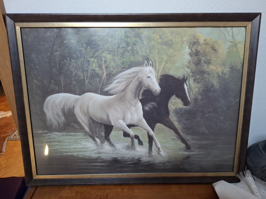 Prodam sliko konja v okvirju s steklom velikosti cca 80 x 60 cm.