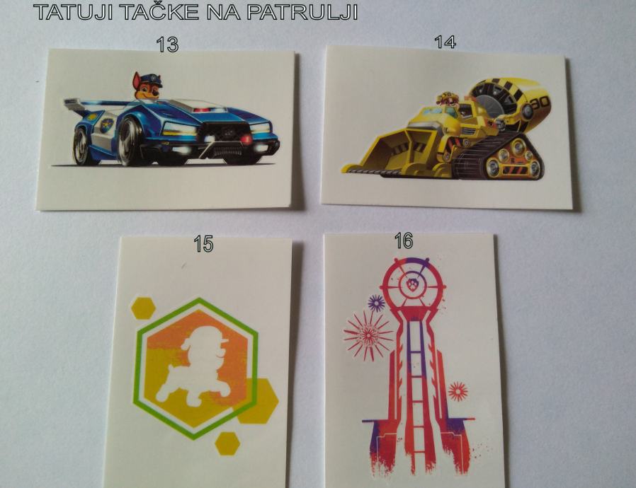 Prodam magnetke, tatuje in sličice z nalepkami za nakup blazin Tačke na patrulji (LIDL, avgust 2021).
