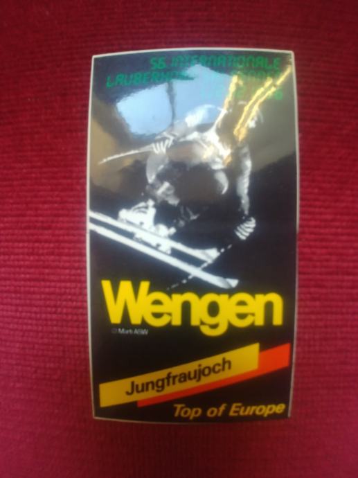 Prodam vintage nalepko smukaške tekme svetovnega pokala v Wengnu iz leta 1986. Redko. Odličen kos za smučarske navdušence. Ogled in prevzem Ljubljana Center. Cena 25 eur. Morebitno poštnino plača kupec. Pokličite 031 382828