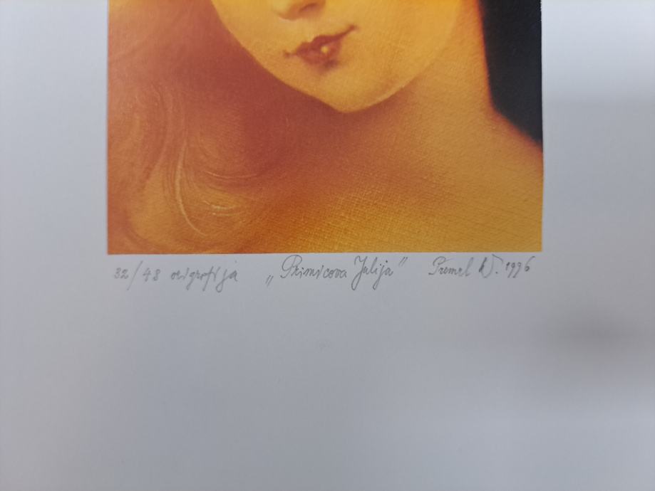 Prodajamo odlično ohranjeno umetniško delo avtorja Dušan Premrl z motivom "Primičeva Julija".