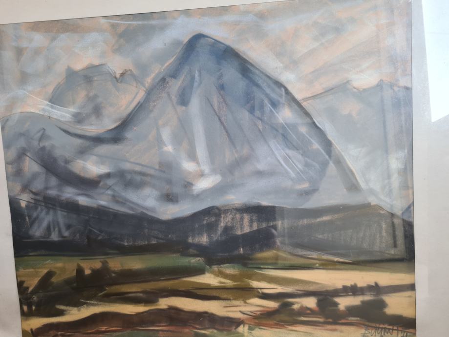 - umetniška slika ,podpisana,morda Boštjan? Zastekljena ,mere z okvirjem ca 77x67cm ,pastel,,,,
