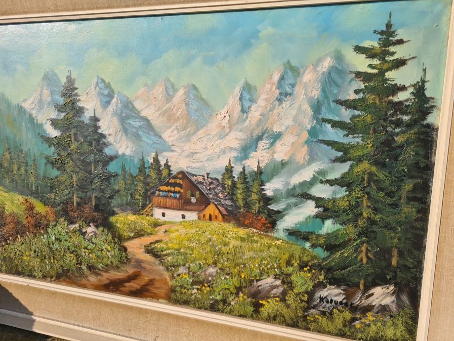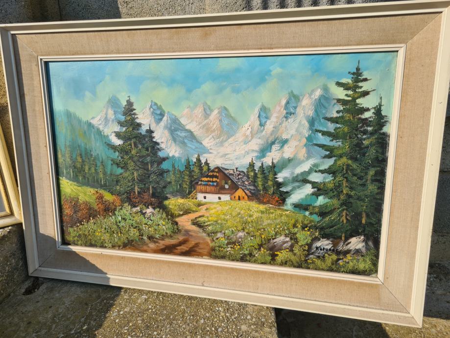 - Umetniška slika olje na platno, podpisana ,slikar Korošec,mere z okvirjem 95x63cm - 179€