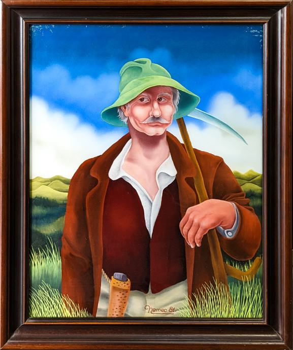 Prodajamo odlično ohranjeno umetniško delo Francija Nemca z motivom kmeta in letnico 1981.