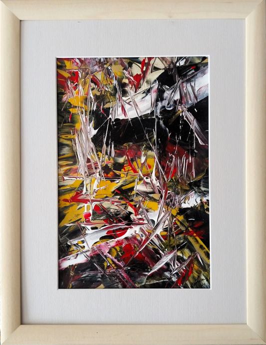 Akril na papirju z paspartujem abstrakcija W44 34x44cm original prodam