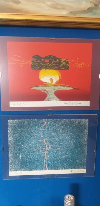 Prodam barvno grafiko slikarja Franceta Slane (1926 - 2022). Pri tem sta na voljo dva različna motiva, lahko posamezno ali oba skupaj. Cena za posamezni kos znaša 225e. V primeru odkupa obeh primerkov umetnin hkrati, sem jih pripravljen prodati za 415e. Glede na aktualne cene umetnin omenjenega slikarja so to zelo sprejemljive vrednosti.
