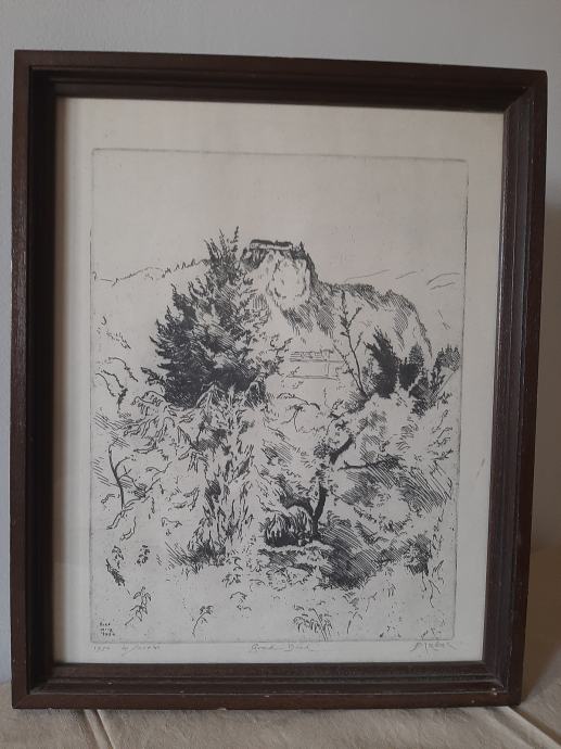 Bozidar Jakac, Grad Bled, grafika (1954 41/40 +40) v okvirju dim 33š x 41 v, prodam.