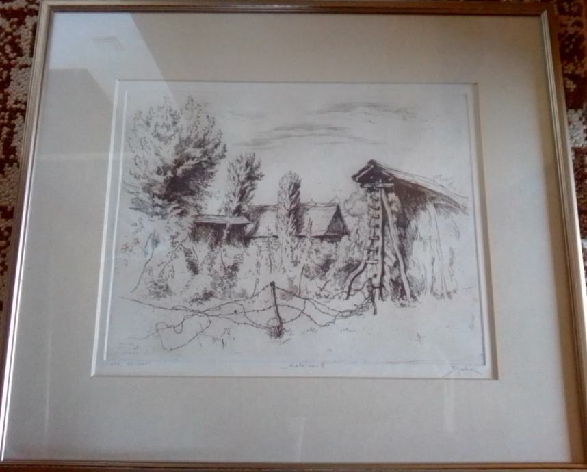 Prodam sliko Božidarja Jakca, Mala vas II, grafika (86/50+50). Leto: 1954. Mere: 32 cm x 24 cm, z okvirjem 50 cm x 43 cm.