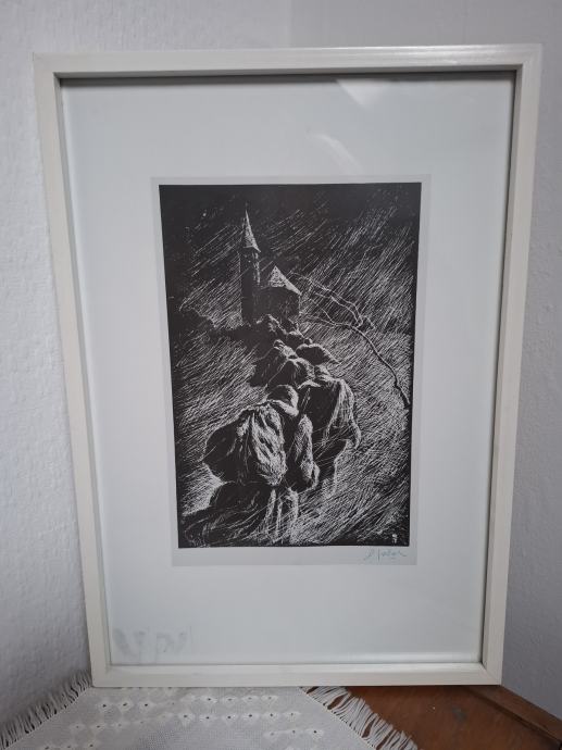 Prodam okvirjeno grafiko - Cerkev- akademskega slikarja Božidarja Jakca.