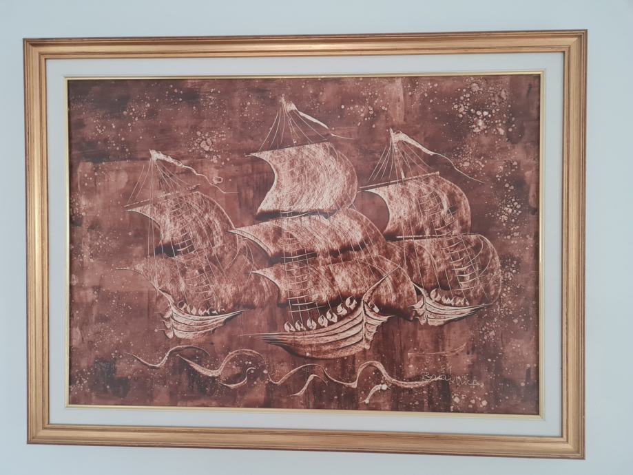 KRASNA SLIKA JADRNIC VELJKA BRAUNIČARJA letnik 1981 uokvirjena v kompakten zlat 3 cm okvir. Celotna dimenzija uokvirjene slike 60x80 cm (sama slika 50x70 cm). Tel. 051 646 928