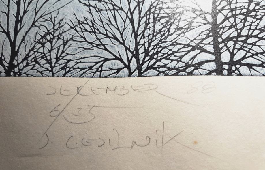 Danilo Cedilnik, December 1988, linorez 6/35, velikost grafičnega lista 68,5 x 45 cm. Slika se prodaja z okvirjem.