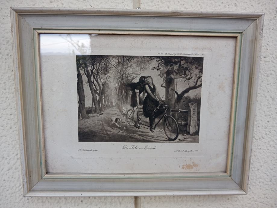 Die Liebe am Zweirad, natisnjena slika iz 1899, v okvirju 22x28cm.