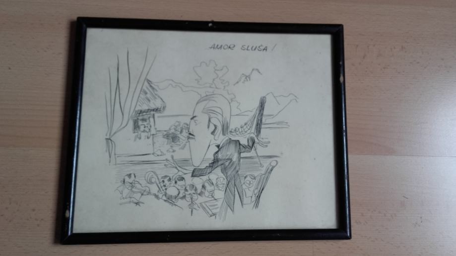 Dirigent Vlado Kobler.Karikatura...amor sluša.Osijek,Lukman Slavko?