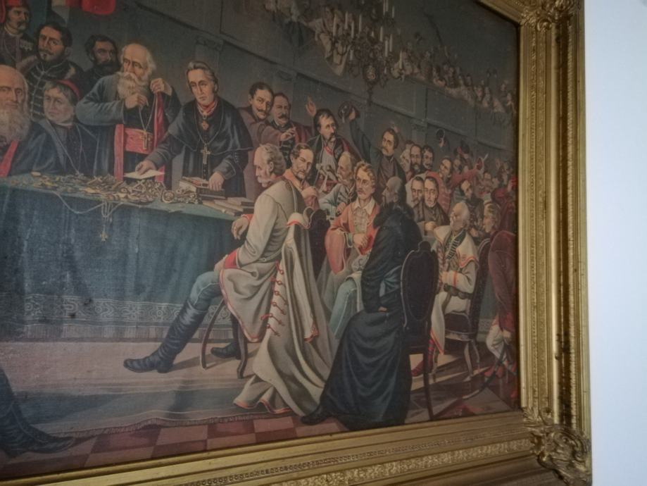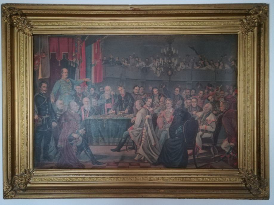 - Opis slike : Zasedanje Hrvatskega Sabora 4. julija. 1848. leta, na kateri Ban Jelačič od saborskih zastopnikov išče sredstva za branitev domovine in oborožitev Hrvaške vojske.