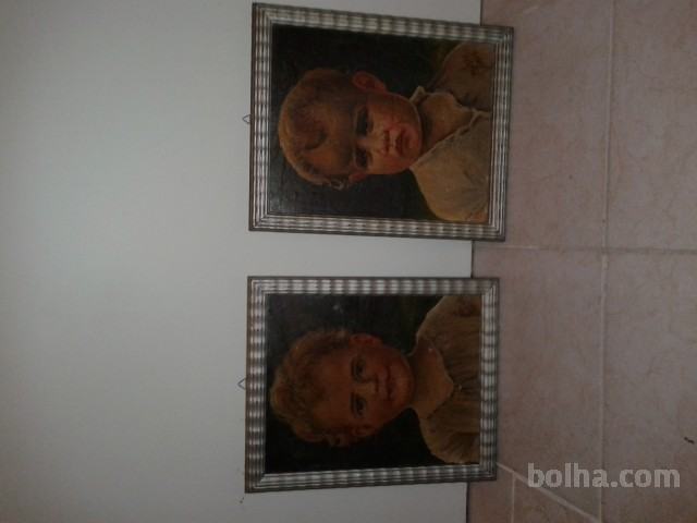 Dve starinski sliki "brata" iz leta 1913, olje na lesu, dimenzije 31x25 cm prodam.