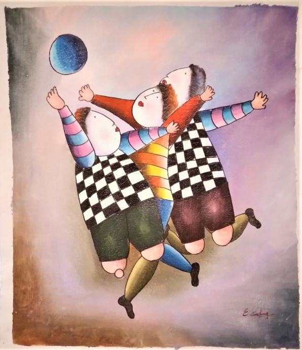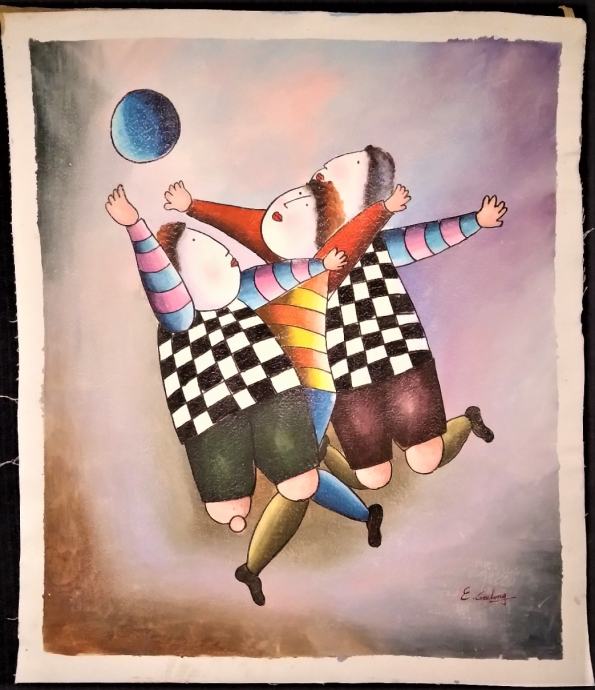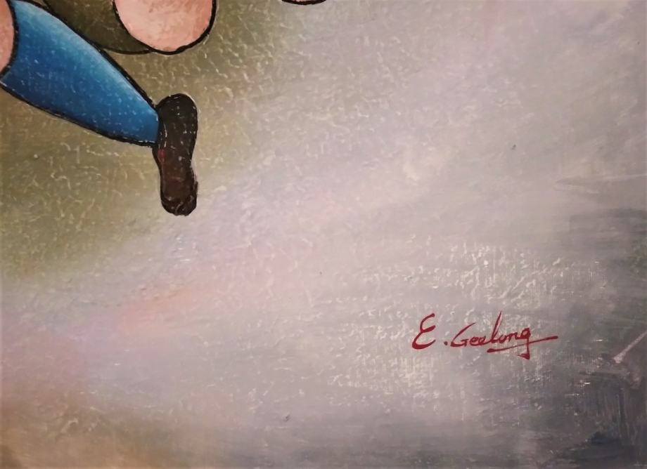 E.Geelong je umetnik podobne afinitete in tehnike kot Joyce Raybal in uporablja podobne ali iste motive in tehnike, na njegovo delo pa je vplivala druga umetnica po imenu Graciela Rodo Boulanger. Slike E.Geelonga uporabljajo okrasne goste teksture, teme pa so večinoma otroci, ki igrajo na glasbila ali športne žoge, baloni, kolesa. Nekateri njegove slike imenujejo "napihnjeni ljudje".