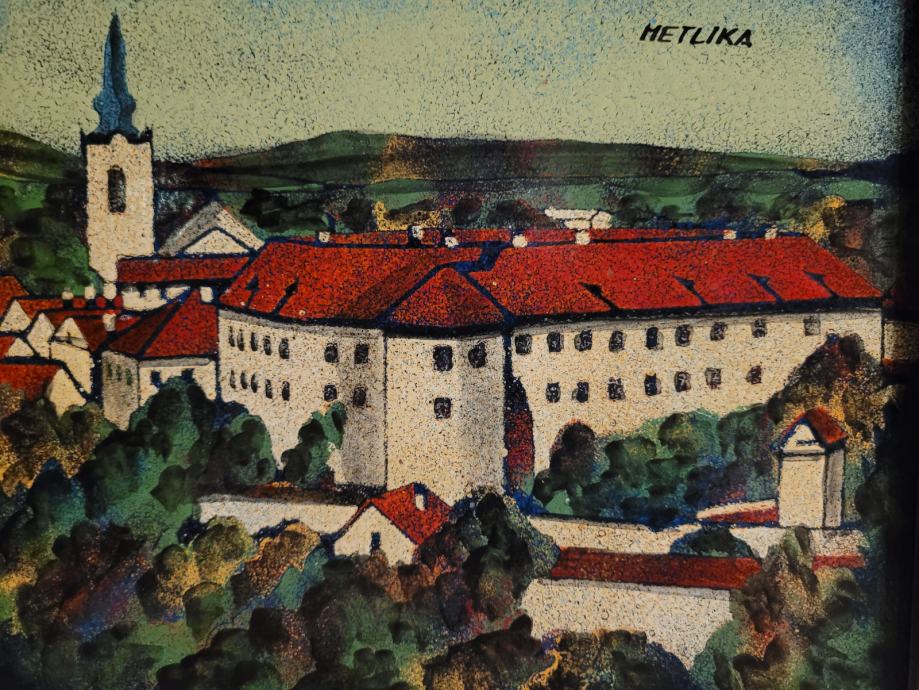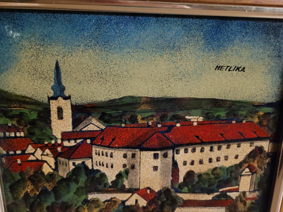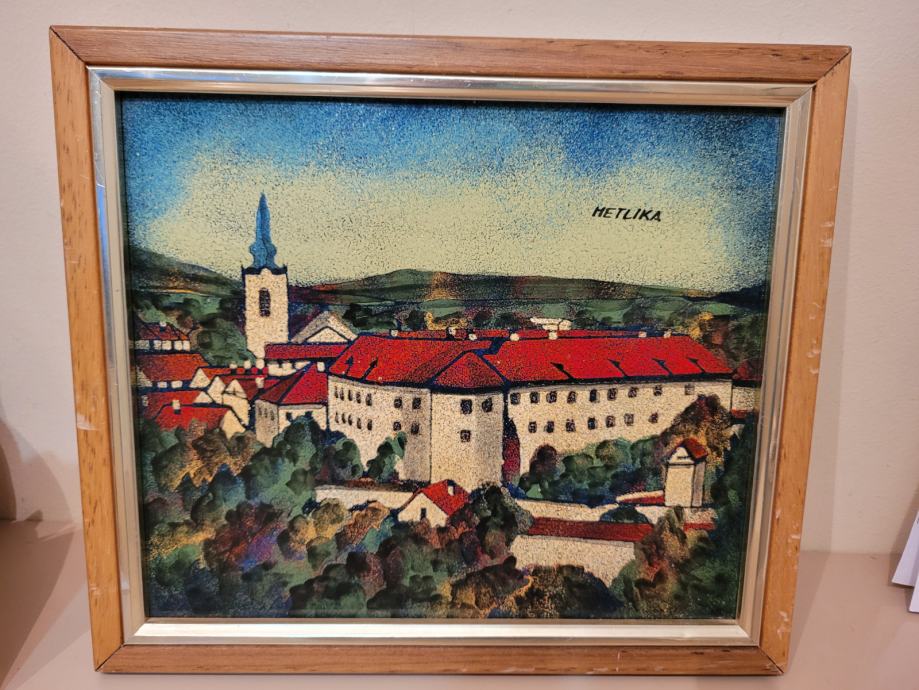 Emajl vintage slika Metlika, Metliški grad, ročno delo, Dekor Zagreb, rućni rad.