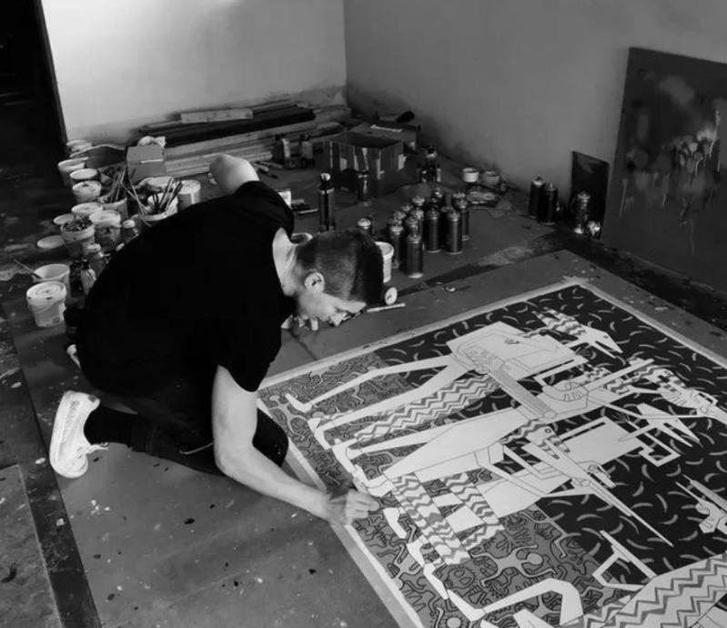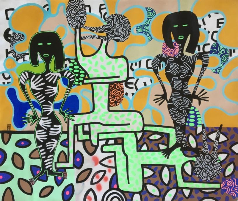 Mamba Figures - unikatna akrilna slika na platnu slikara Floriana František. Navdihnjeno z afriško umetnostjo.