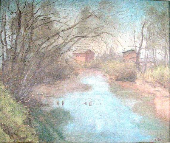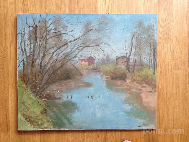 Očiščeno, izjemno lepo ohranjeno Godčevo krajinsko olje na platnu. Glejte slike o poteku čiščenja.