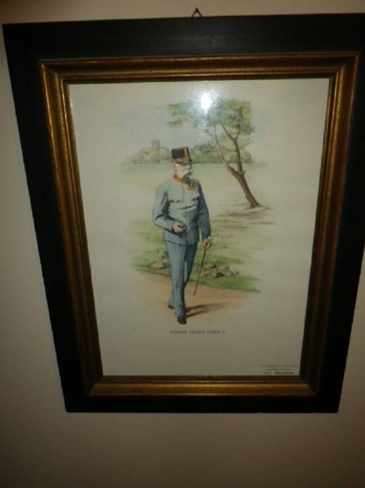 Slika cesarja Avstroogrske Franz Josefa, odtis ročno koloriran ( napis spodaj levo ) v okvirju ................. primerno za dekoracijo zbirateljske sobe, zelo dekorativno ..............