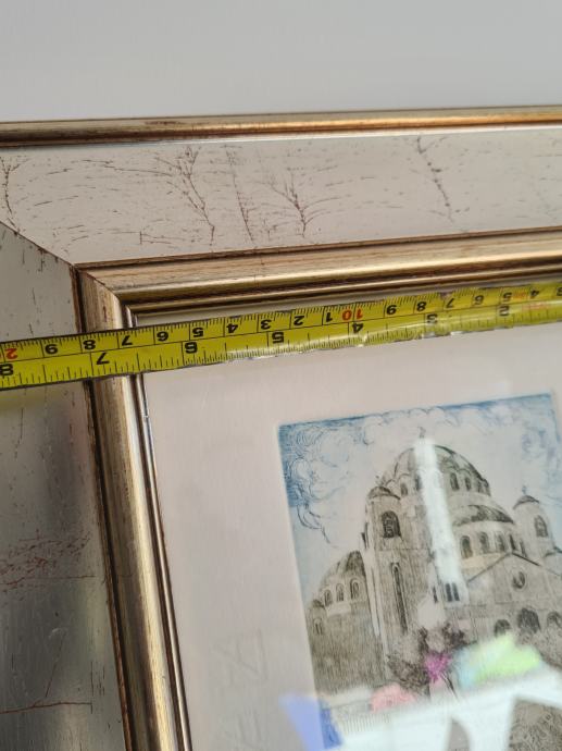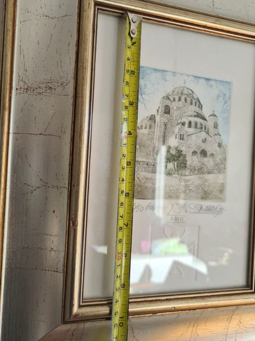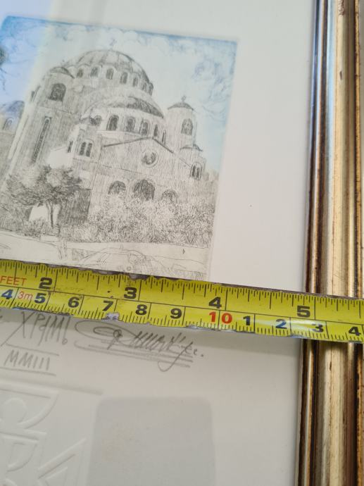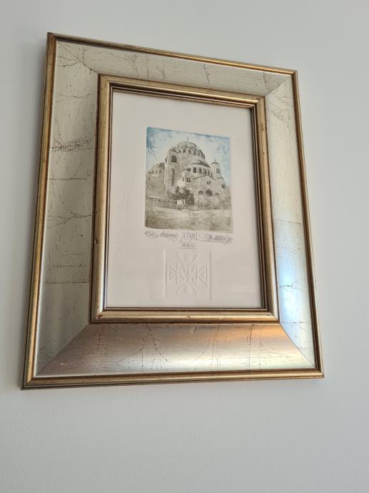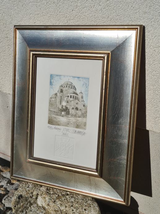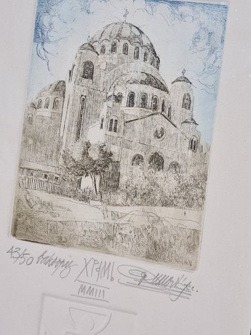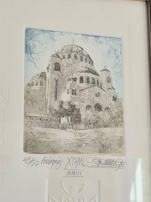 Na voljo je lepa jedkanica grafika bakrotisk cerkev sveti sava zastekljena v krasnem okvirju,