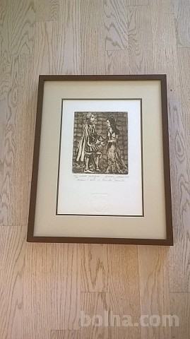 GRAFIKA , Nevenka M. , Friderik II. Celjski in Veronika Deseniška 2002, 37/50, velikost z okvirjem 35/45, okvir in steklo