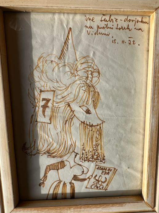 Flomaster na papirju, 16 X 20,5 cm, 15. 2. 1972, Ive Šubic - Dovjaku, na pustni torek na Gostilni na Vidmu v Poljanah nad Škofjo Loko 27, upodobitev maske Frančiške Pintar