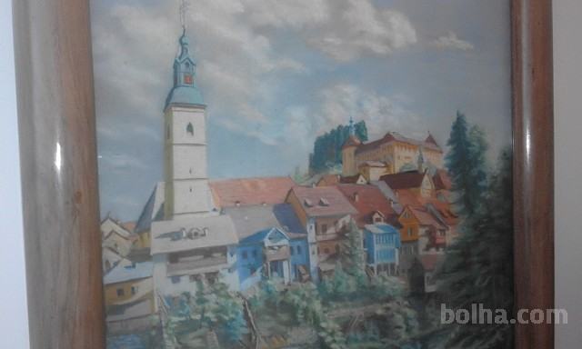 UMETNIŠKA SLIKA ,ŠKOFJA LOKA 1936,ORIGINALNI MASIVEN OKVIR,VELIKOST 85 X 80 ,ZASTEKLJENA,LASTNA ZBIRKA