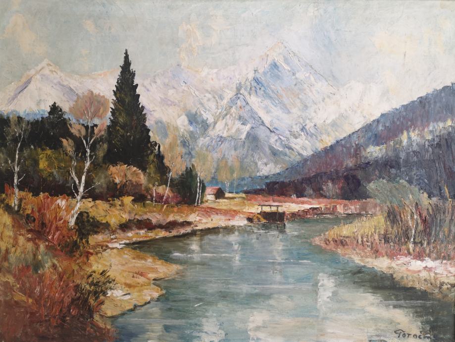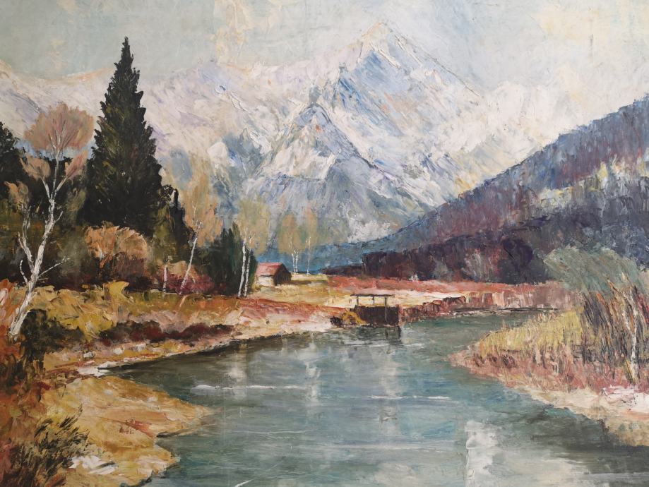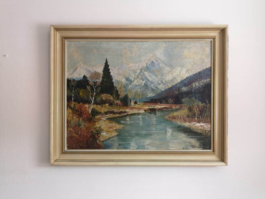 Prodam original podpisano sliko olje na lesu od znanega slikarja Josipa Potočnika. motiv gora narave vode.