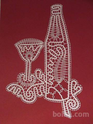 Klekljana čipka je bele barve. Visoka je 23 cm. Primerna je za darilo.