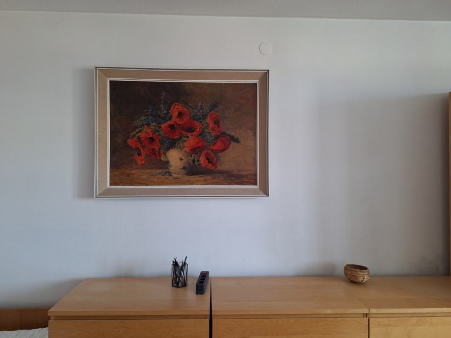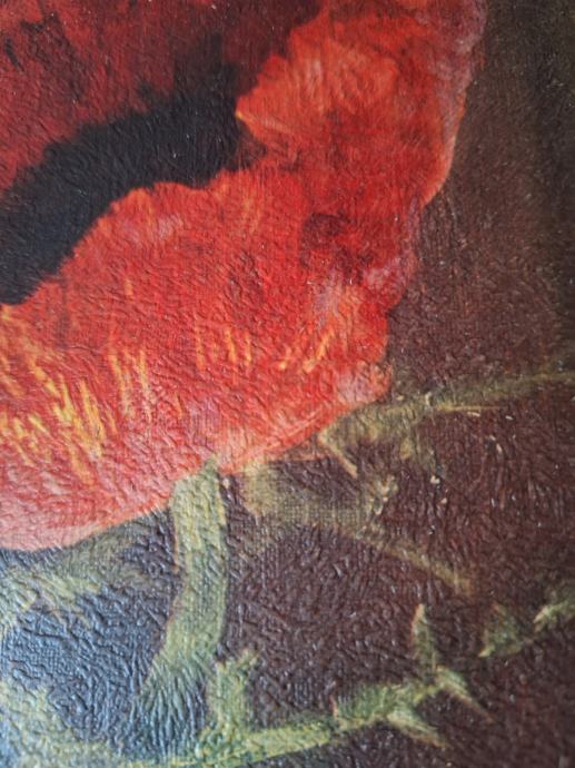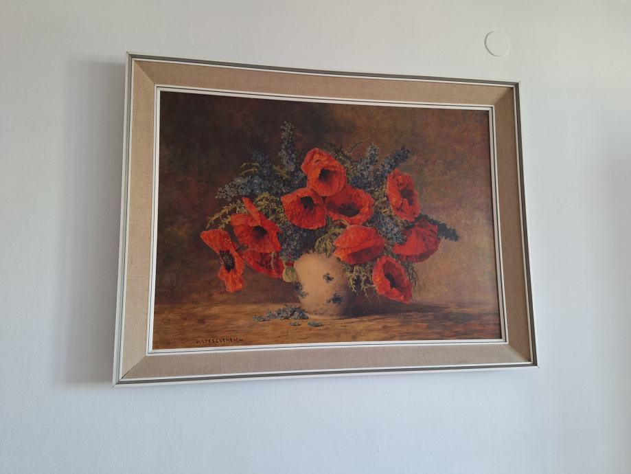 Prodam tisk na platnu zelo lepe slike, vaze z makovimi cvetovi (M. Streckenbach). Slika meri 71 x 100 cm, z okvirjem 117 x 87 cm.