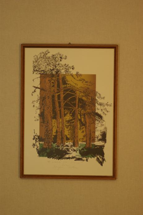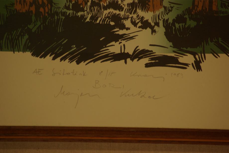 Marjan Kukec (1933 - 2019), slovenski slikar, grafik in fotograf, grafika, Bori, okvirjena in zastekljena, brezhibna.