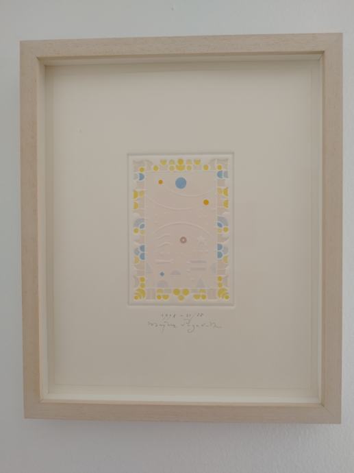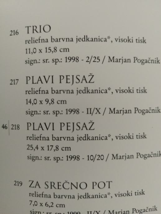 Plavi pejsaž, reliefna barvna jedkanica, mere: 14,0 x 9,8 cm, muzejsko okvirjena.