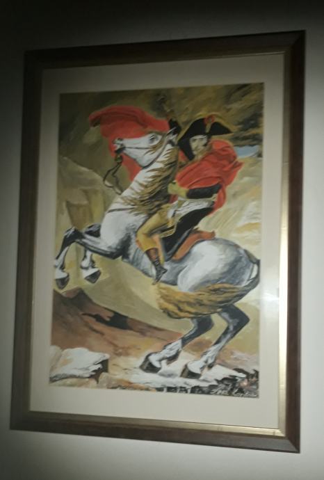 Prodam sliko Napoleon na prelazu sv.Bernarda. Naslikana l.2004 s temperami, uokvirjena s steklom.
