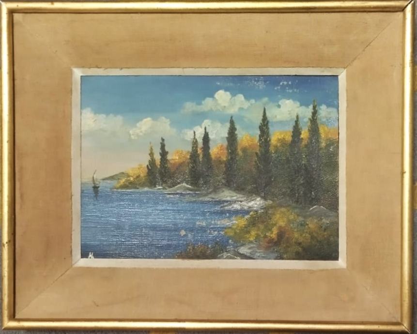 ob morski obali - olje na lesonit
