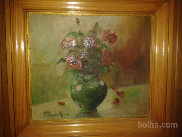 Prodam sliko, olje na platno, tihožitje - šopek, slikarja Janeza Vogelnika. Slika je v originalnem okvirju, nastala je leta 1964.