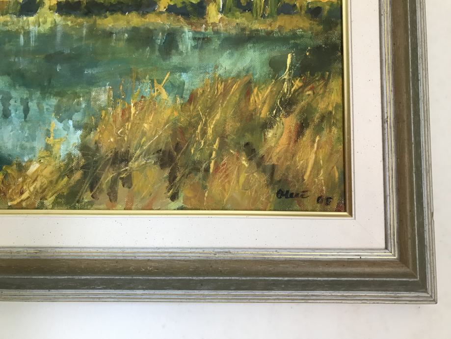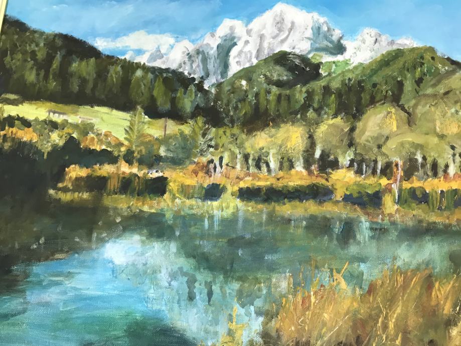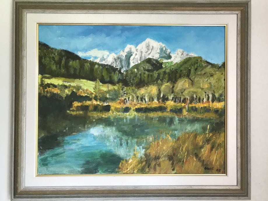 Prodam sliko - olje na platnu, ki upodablja izvir Save Dolinke - Zelenci. Delo je podpisano, nastalo 2005. Notranja mera brez okvirja je 50 x 40 cm. Barve so intenzivne - ne medle. V ozadju se vzpenja gorski masiv s Triglavom.