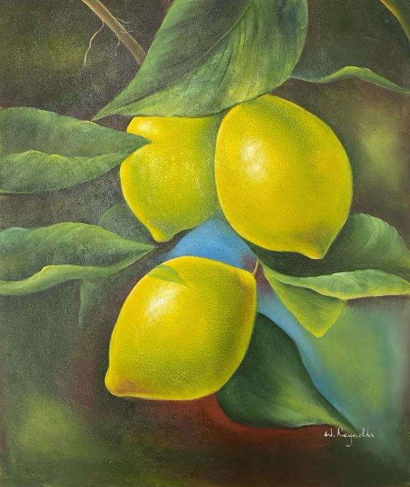 Ugodno prodam umetniško sliko z motivom limonovca - original olje na platnu avtorja W. Reynolds, dimenzije 63 x 51 cm, brez okvirja.