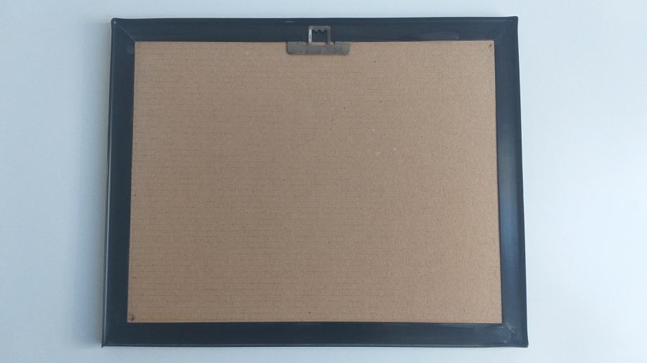 Zaradi oblike okvirja se lahko slika obesi na steno ali se uporablja kot prostostoječa na polici.