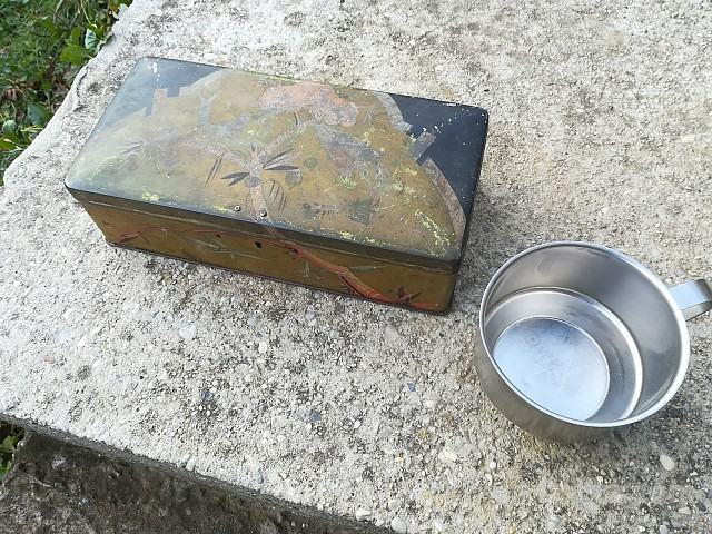 - stara kovinska posoda - škatla od kave - za kavo,velepražarna kave PROJA Ljubljana,,+ inox skodelica,,- 12,99 evr,