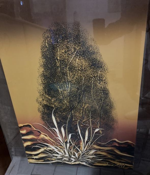 Slika je med dvema steklomna in se lahko obesi na steno