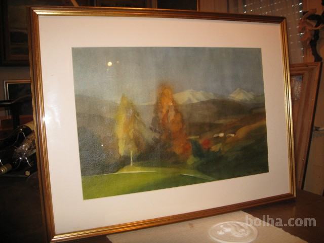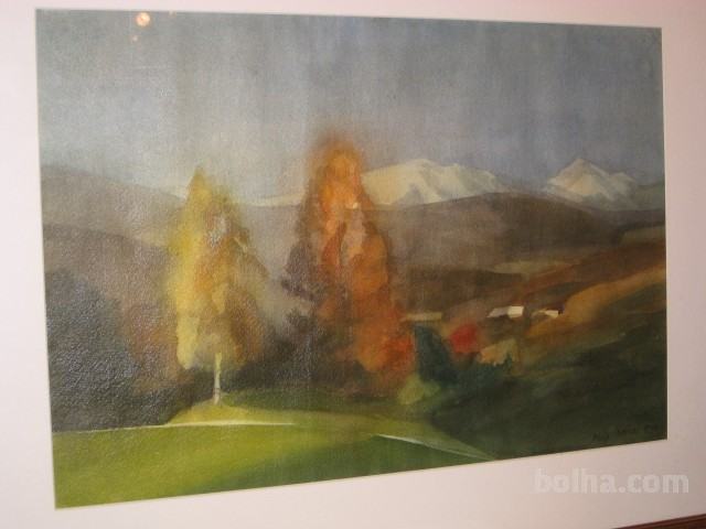 Čudovit ukvirjen akvarel, format 74x59, naslikan 1995, motiv "Pogled iz Tunjic na Kamniške planine," akademskega slikarja Lojzeta Berlec, cena 600 EUR. Tel. 051604218, mail: ironman.slovenia@gmail.com.