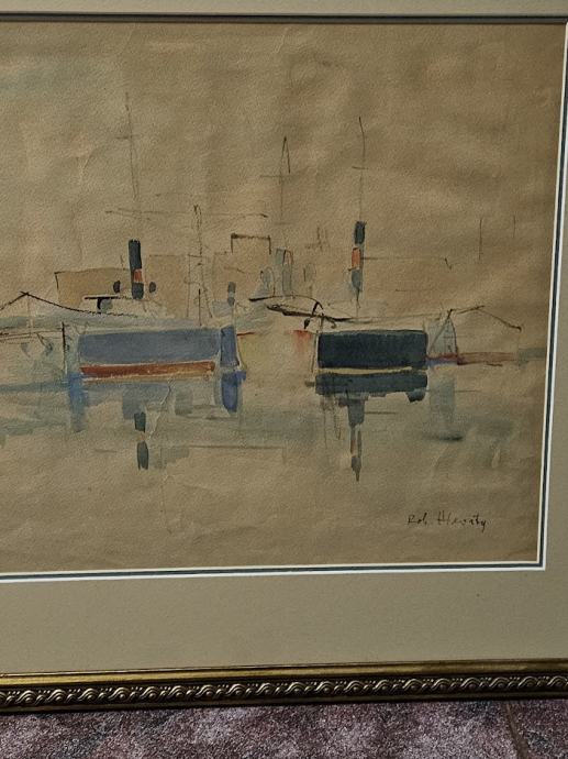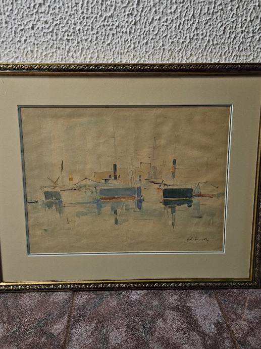 Iz lastne zbirke prodam akvarel avtorja Roberta Hlavatyja z motivom pristanišča,