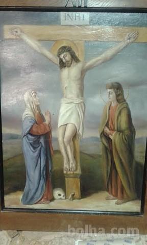 Prodam ali zamenjam za drugo umetnino ali starino sakralno sliko olje na lesu 90 X 66 cm predvidevam umetnina iz začetka 20. stoletja