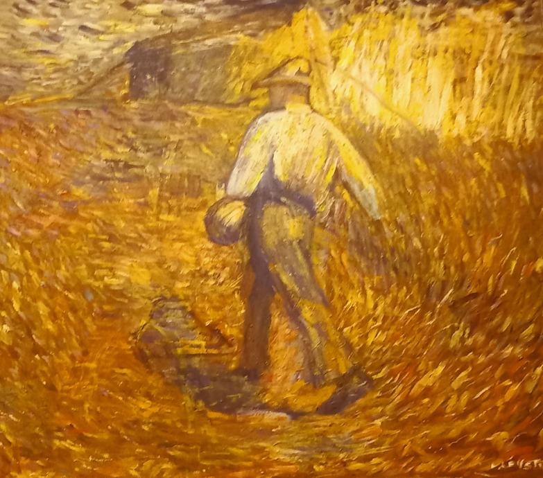 Olje na platnu, 90 X 80 cm, inspiracija po Groharju, avtor Lilijana Levstik