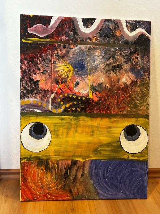 Prodam abstraktno sliko - naslikana z akrilnimi barvami na platno. Dimenzije so 70x50cm. Po možnosti bi lahko dostavil tudi do Ljubljane. Pogojno lahko dostavim do Ljubljane