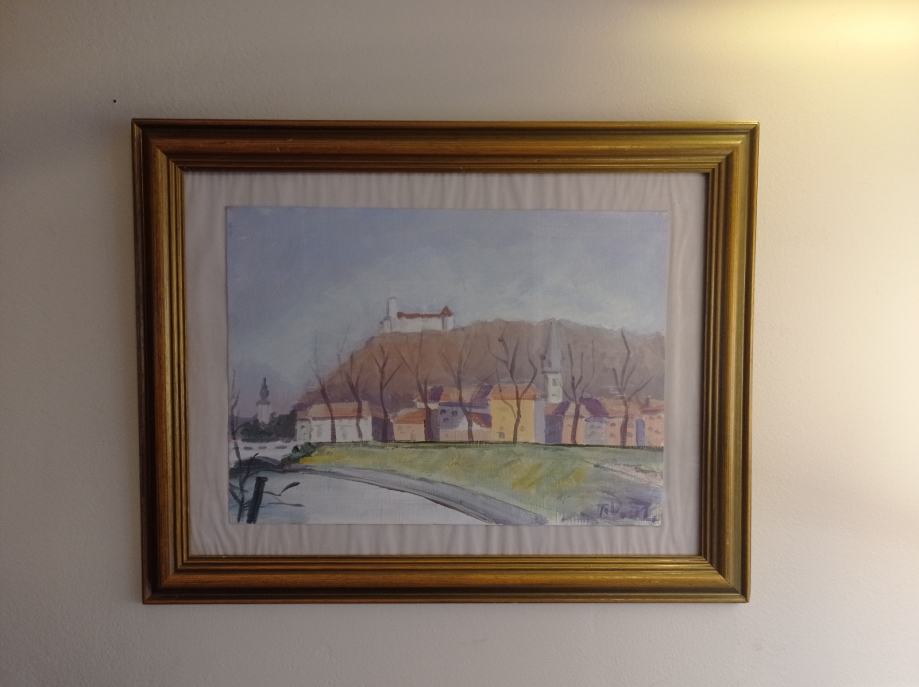 Prodam sliko z okvirjem akvarel Ljubljana s podpisom . Velikost okvirja 47 cm x 37 cm.